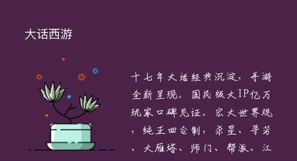 十七年大话经典沉淀,手游全新呈现。国民级大IP亿万玩家口碑见证。宏大世界观,纯正回合制,杀星、寻芳、大雁塔、师门、帮派、江湖行,缤纷玩法养育系统,经典创新——《大话西游》手游七
