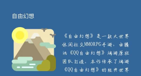 《自由幻想》是一款大世界休闲社交MMORPG手游,由腾讯《QQ自由幻想》端游原班团队打造。本作传承了端游《QQ自由幻想》的经典世界观,画风清新唯美,玩法丰富多样,道具自由交易,