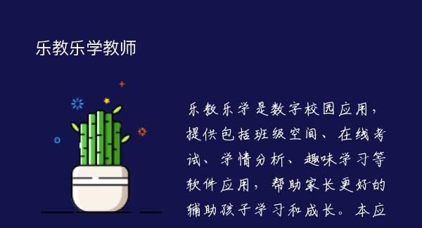 乐教乐学是数字校园应用,提供包括班级空间、在线考试、学情分析、趣味学习等软件应用,帮助家长更好的辅助孩子学习和成长。本应用不对学前儿童直接提供服务、不向中小学生提供校外学科类培