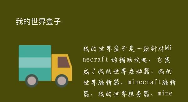 我的世界盒子是一款针对Minecraft 的辅助攻略,它集成了我的世界启动器、我的世界编辑器、minecraft编辑器、我的世界服务器、minecraft皮肤生成器等我的世界手