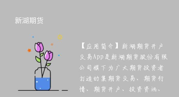 【应用简介】新湖期货开户交易App是新湖期货股份有限公司旗下为广大期货投资者打造的集期货交易、期货行情、期货开户、投资资讯、业务办理、一对一客服等多功能于一体的期货/期权/资讯