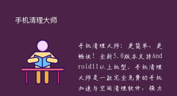手机清理大师:更简单,更畅快!全新5.0版本支持Android11以上机型。手机清理大师是一款完全免费的手机加速与空间清理软件,强力加速使手机运行更流畅,一键清理快速解决空间不