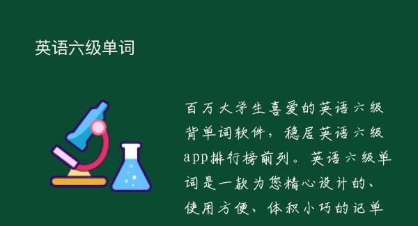 百万大学生喜爱的英语六级背单词软件,稳居英语六级app排行榜前列。英语六级单词是一款为您精心设计的、使用方便、体积小巧的记单词软件,通过真人语音、单词测试、拼写测试、阅读、真题