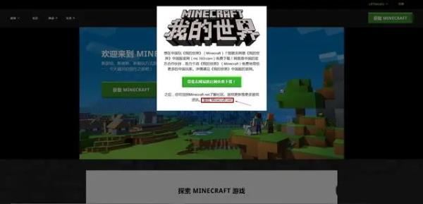 需要我们注意的是,官网弹出的窗口会指示玩家前往网易版《我的世界》,只需要点击下方的留在minecraft.net即可。