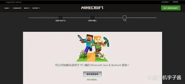 其实按照付款引导,最后一步就是下载项,但是如果玩家不小心退出了网页也没有关系,可以再次进入游戏官网,点击购买Minecraft,这时候就会弹出再次下载的选项,点击即可重新下载。