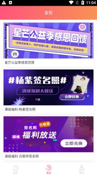 2、有时候你还能点击发现当中看到有很多福利签名照相送。