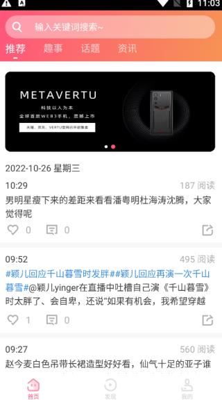 1、软件是一款专门用于最新娱乐新闻的资讯软件,用户可以在这里获得第一手消息;