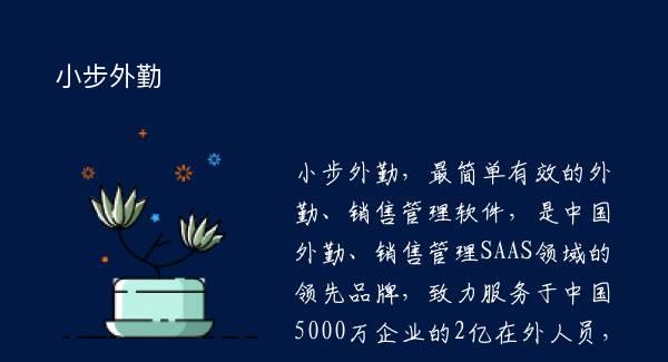 小步外勤,最简单有效的外勤、销售管理软件,是中国外勤、销售管理SAAS领域的领先品牌,致力服务于中国5000万企业的2亿在外人员,提高企业执行力,打造高能量团队,提升企业业绩。