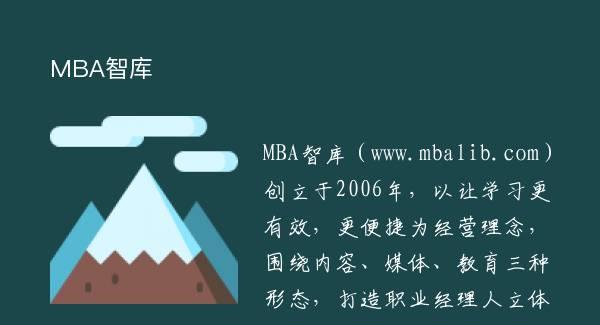 MBA智库(www.mbalib.com)创立于2006年,以让学习更有效,更便捷为经营理念,围绕内容、媒体、教育三种形态,打造职业经理人立体式生活圈,对其学习成长路径,提供全