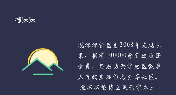 搅沫沫社区自2008年建站以来,拥有100000余有效注册会员,已成为西宁地区很具人气的生活信息分享社区。 搅沫沫坚持立足西宁本土,辐射青海地区,为市民的吃喝玩乐购搭建信息分享