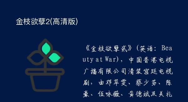 《金枝欲孽贰》(英语:Beauty at War),中国香港电视广播有限公司清装宫廷电视剧,由邓萃雯、蔡少芬、陈豪、伍咏薇、黄德斌及关礼杰领衔主演,监制戚其义。此剧为2013无