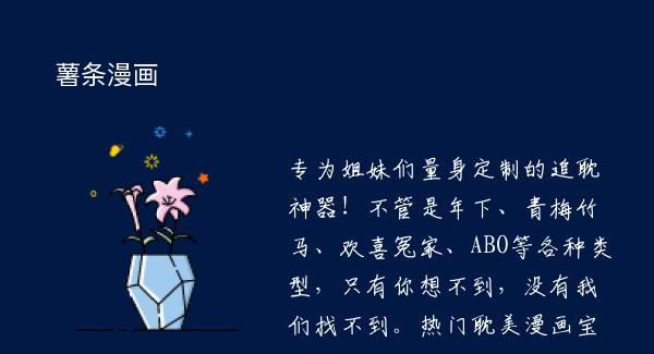 专为姐妹们量身定制的追耽神器!不管是年下、青梅竹马、欢喜冤家、ABO等各种类型,只有你想不到,没有我们找不到。热门耽美漫画宝藏小说统统免费看,更有专属社区、金币商城礼品兑换等多