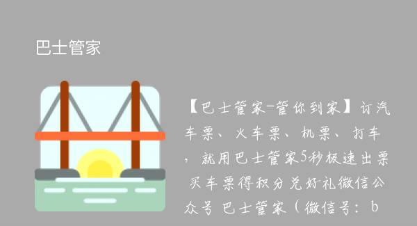 【巴士管家-管你到家】订汽车票、火车票、机票、打车,就用巴士管家5秒极速出票 买车票得积分兑好礼微信公众号 巴士管家(微信号:bashiguanjia)小编微信号:bashig
