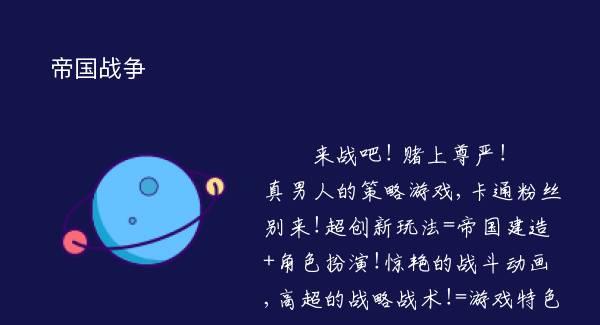 ⊕⊕来战吧! 赌上尊严!⊕⊕真男人的策略游戏,卡通粉丝别来!超创新玩法=帝国建造+角色扮演!惊艳的战斗动画,高超的战略战术!=游戏特色=√建立并发展你的帝国√招募传奇英雄,征战