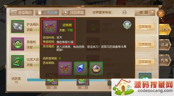 1、等级到51级后,开启试练塔任务。