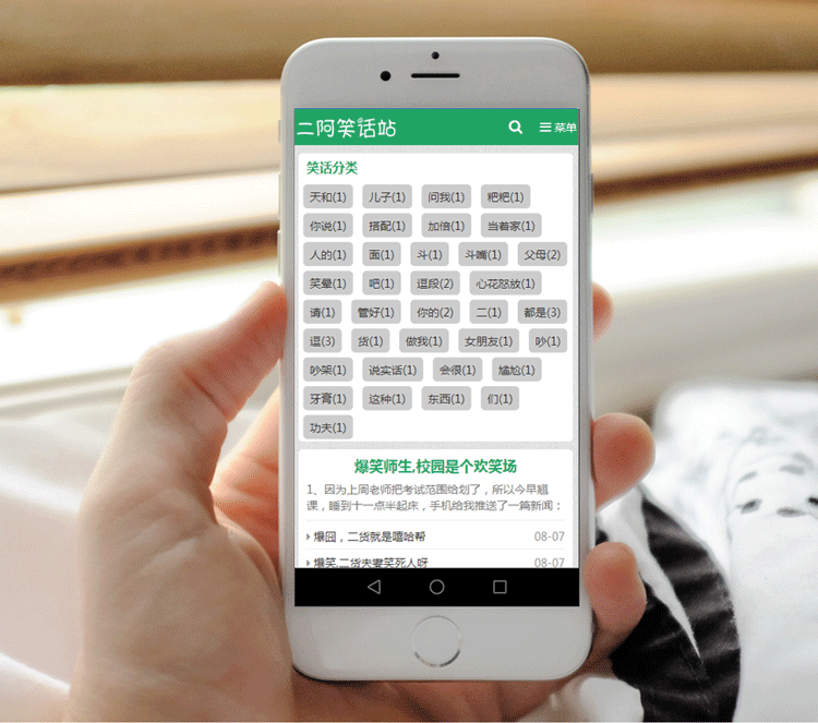 笑话囧事类博客网站源码,页面简明大气。响应式网页设计,自适应手机版本。适合笑话站,幽默段子博客文章网站建站使用。带整站数据带后台。织梦cms5.7版本后台,开源程序,开发操作简单方便。
