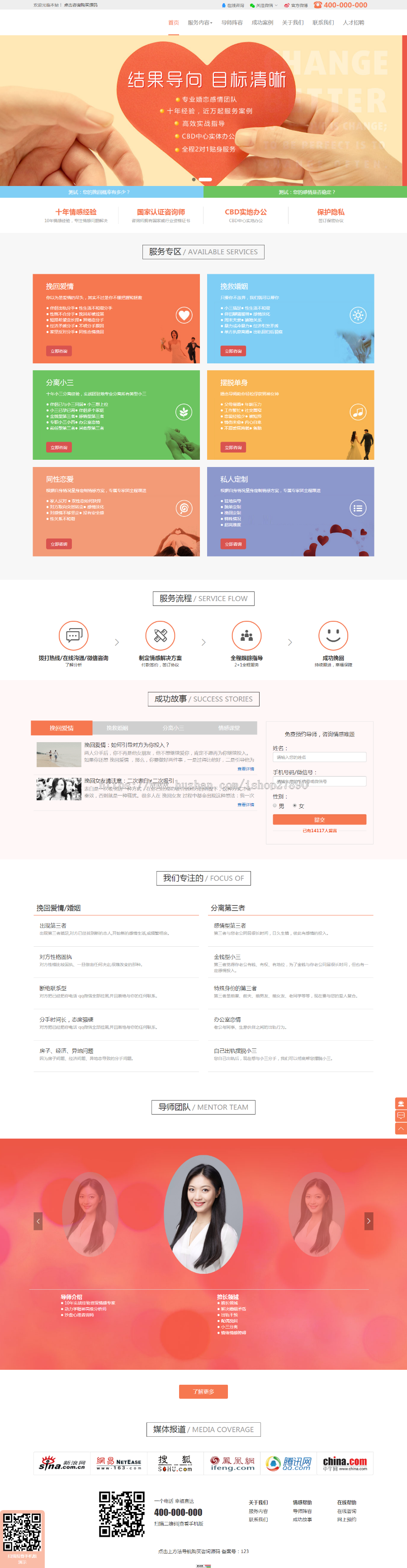 2、源码根据情感挽回行业 设计页面,所有无需二次进行更改页面。