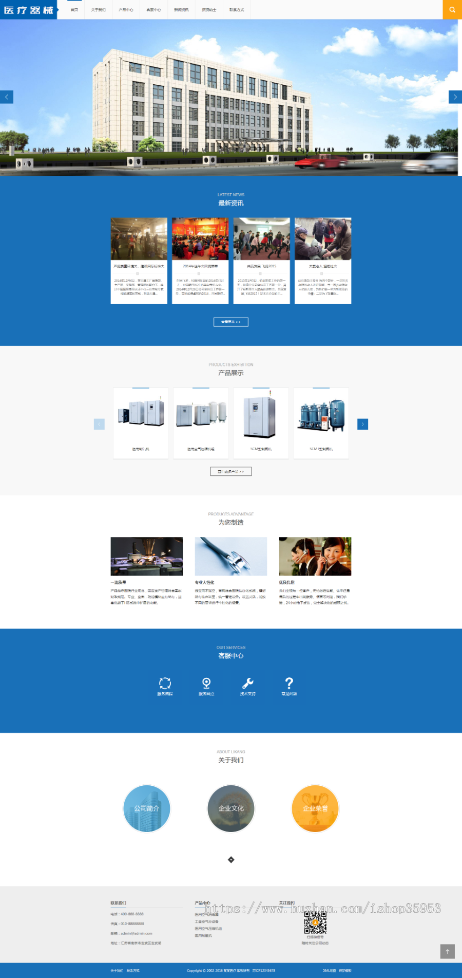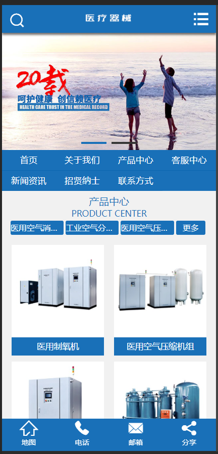 (带手机安卓版数据库同步)空气医疗机械类网址织梦网站模板 深蓝色医疗器械网站源代码
