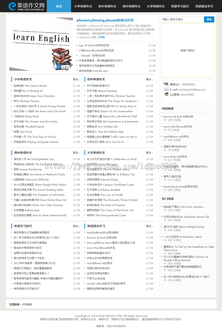 优秀作文网站模版,合适学生作文展现,英语方法文章内容网站制作应用。带单独手机版。带整站源码数据信息带后台管理。织梦cms5.7版本号后台管理,开源代码,开发设计实际操作简易便捷。所卖源代码与演试网址一致,实际敬请参考演试网址。