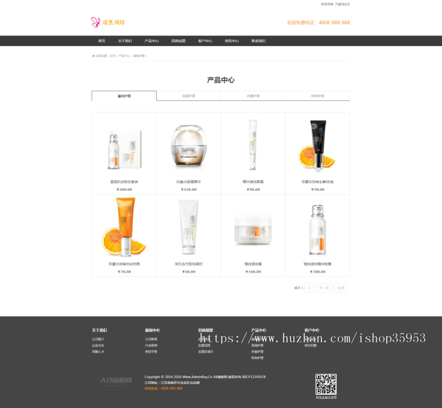 2、实际效果非常的酷炫,非常简约空气高档,模版简易,所有已数据信息启用,只需后台管理改动栏目名称就可以