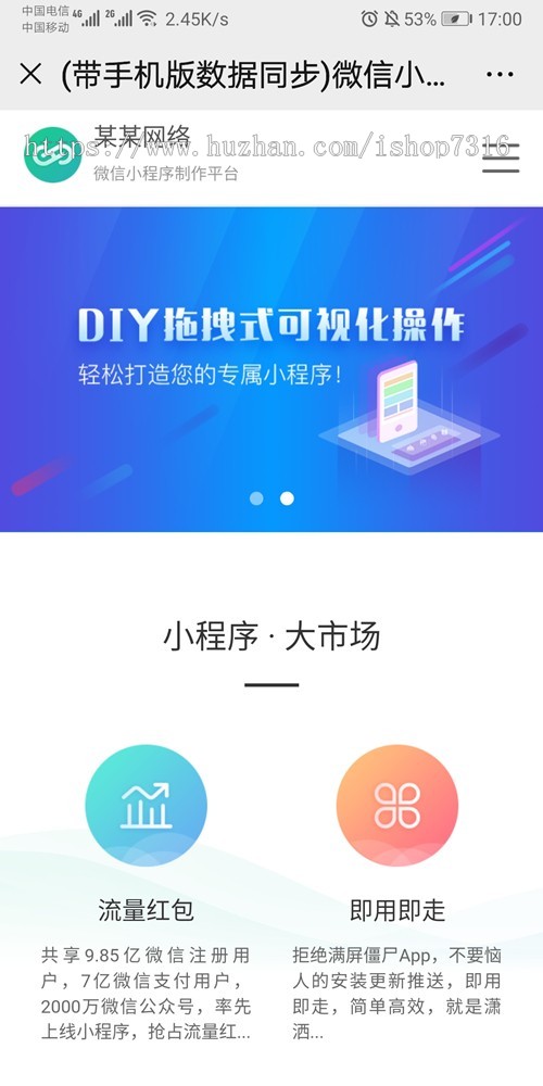 小程序开发设计小程序定制代理商展现微信小程序市场销售织梦网站模板带手机安卓版