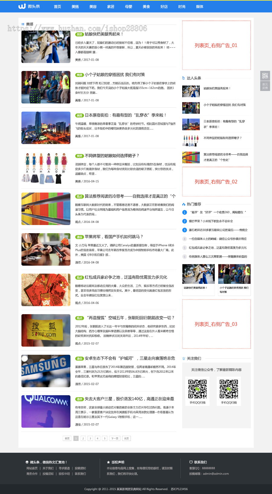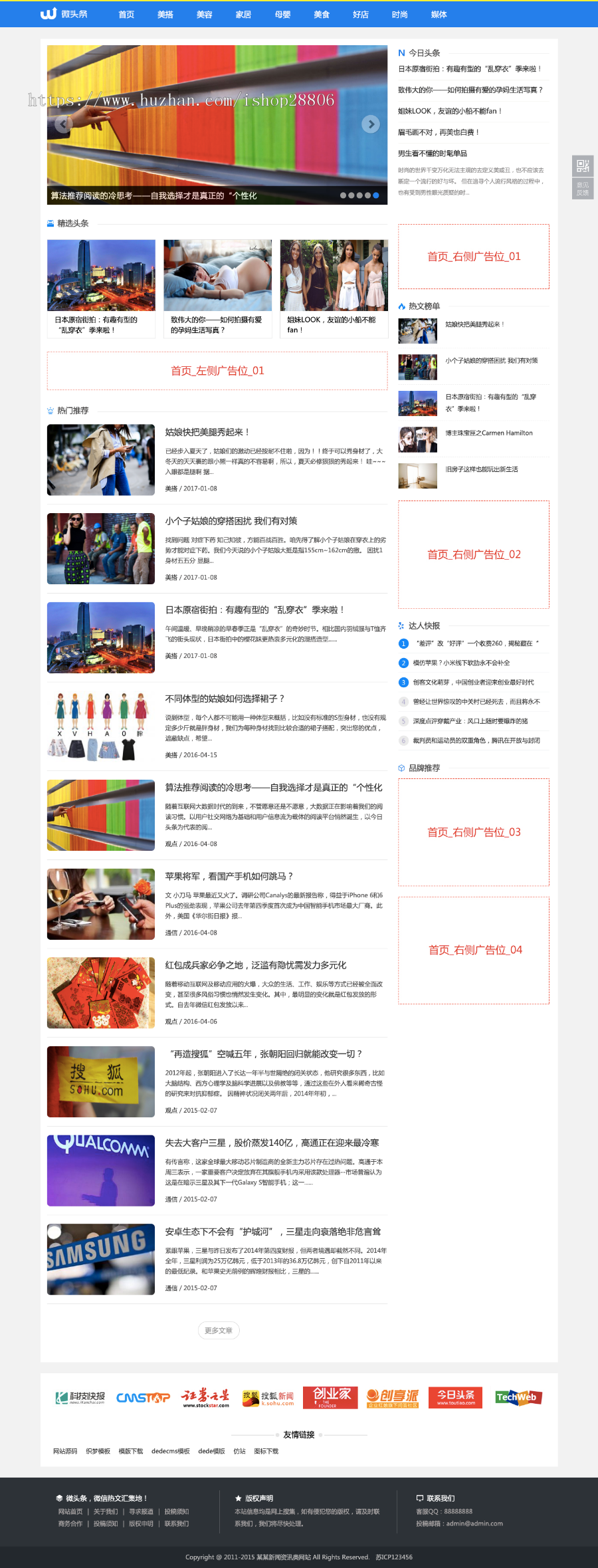 3、适用自媒体平台今日头条织梦网站模板、新闻报道blog网站源代码;