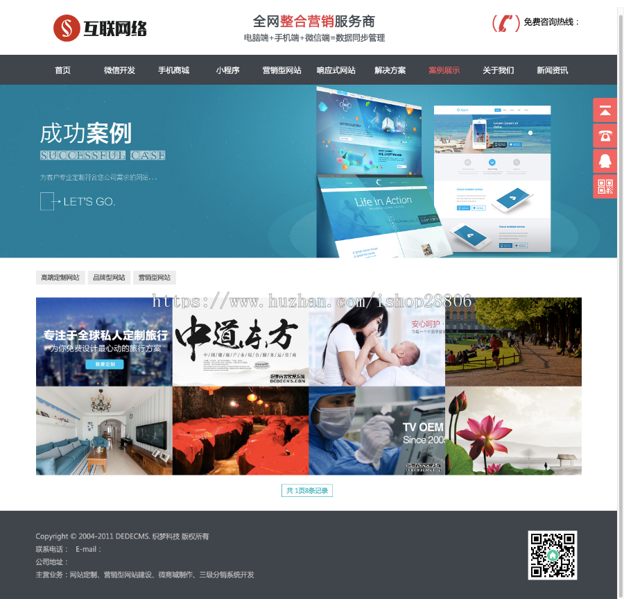 5:后台管理立即改动联系电话、详细地址、版权信息,网站内容等,改动更为便捷。