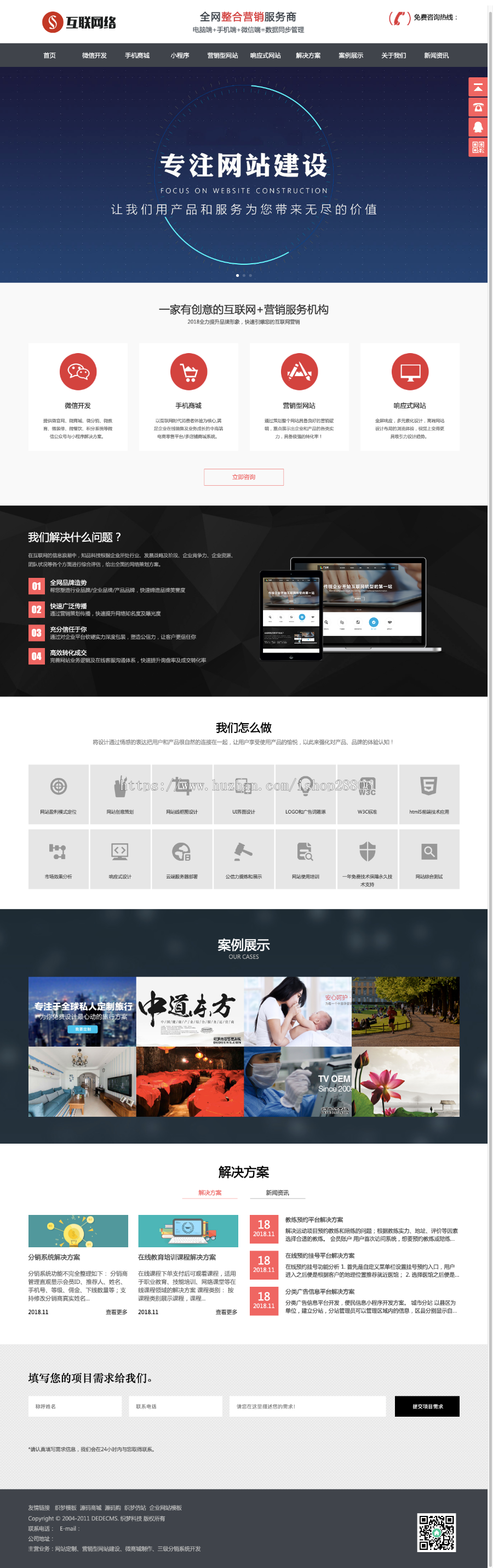 2:主页带新闻报道展现,服务流程,经典案例等。