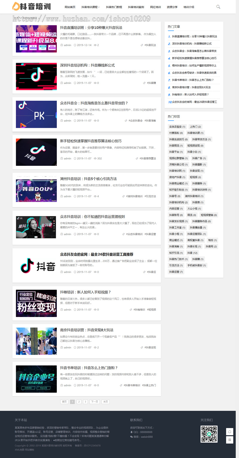 3、适用培训课程网站模版、资讯新闻网站源代码、抖音培训网站模版;