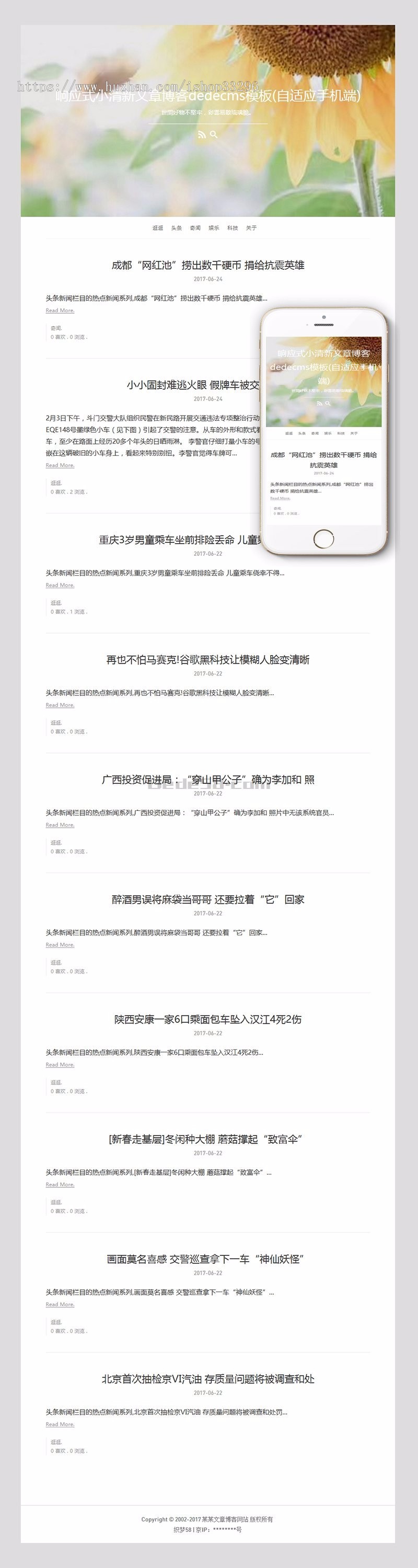 织梦cms核心开发设计的模版,该模版归属于新闻报道、blog、文章内容类公司应用,一款适用范围较强的模版,基础能够 合适各制造行业的企业官网!响应式网站响应式各种各样移动终端,同一个后台管理,数据信息及时同歩,简易可用!原创品牌、手工制作撰写DIV CSS,极致适配IE7 、Firefox、Chrome、360浏览器等;主流浏览器;网页页面简约简易,非常容易管理方法,DEDE核心都能够应用;附加数据测试!