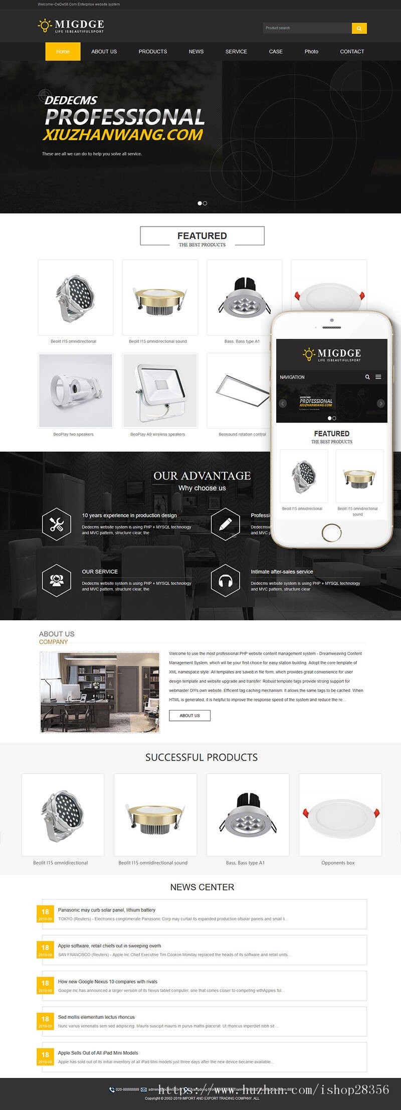 织梦cms核心开发设计的模版,该模版归属于公司通用性类、照明灯具、照明灯饰、英语、出口外贸类公司都可以应用,这款模版应用范畴极广,不仅限于一种类的公司,你只必须把照片和商品內容;换为你的,色调都能够改动,改好给你耳目一新的觉得!app分发源代码响应式网站响应式设计方案,同一个后台管理,数据信息及时同歩,简易可用!原创品牌、手工制作撰写DIV CSS,极致适配IE7 、Firefox、Chrome、360浏览器等;主流浏览器;网页页面简约简易,非常容易管理方法,DEDE核心都能够应用;附加数据测试!