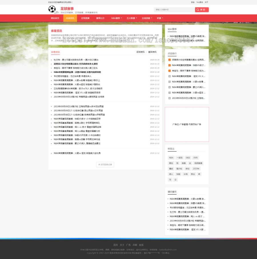 织梦cms核心开发设计的模版,该模版归属于HTML5响应式网站、体育比赛、体育比分、体育报道、体育评论类公司应用,一款适用范围较强的模版,基础能够合适各制造行业的企业网