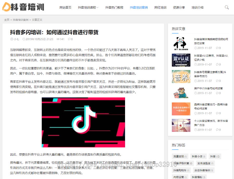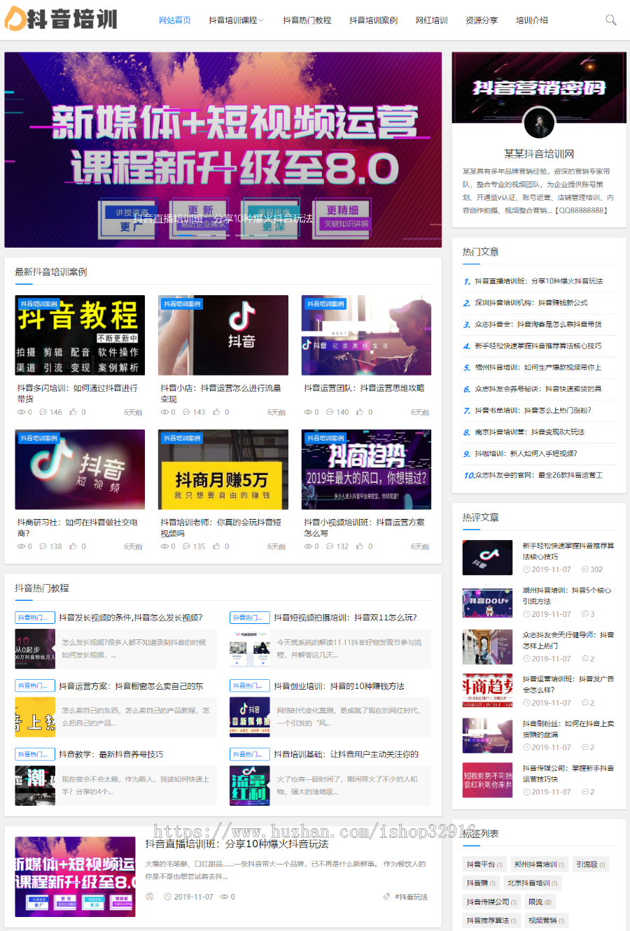 抖音培训课程内容新闻资讯类源代码 html5自适应网站 资讯新闻培训教材 dedecms织梦网站模板 移动端响应式 使用教程(文本 视頻)