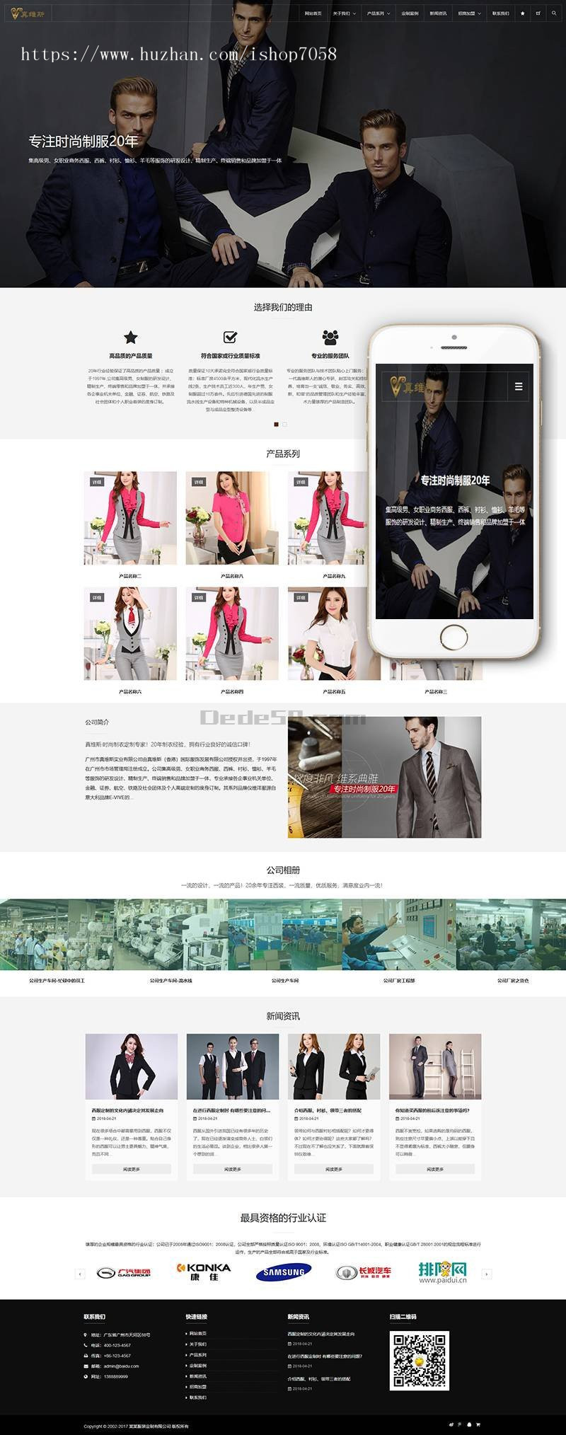 响应式网站西装服装定做类网址织梦网站模板(响应式移动端) PC wap 有利于SEO提升