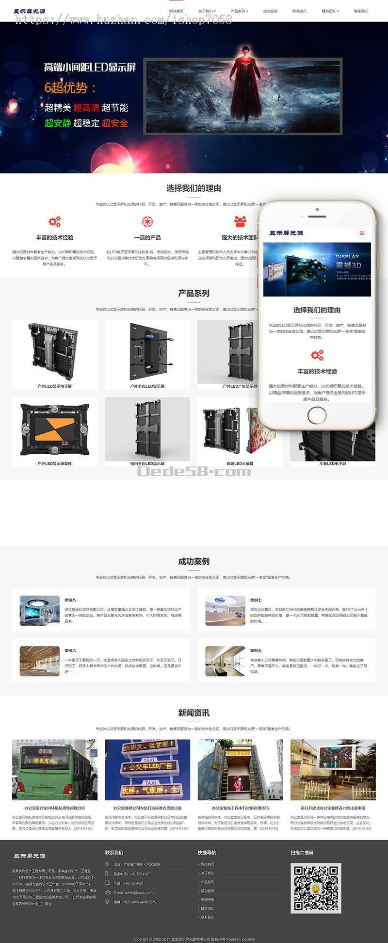 响应式网站LED显示器灯源类织梦网站模板(响应式移动端) PC wap 有利于SEO提升