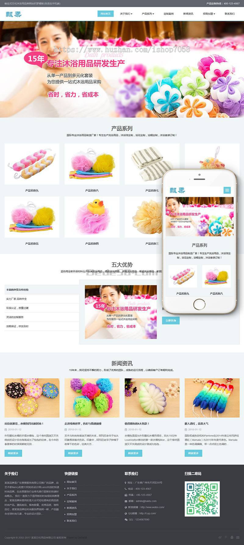 织梦cms核心开发设计的模版,该模版归属于公司通用性、HTML5响应式网站、日化产品、淋浴用具、日常生活用品类公司应用,