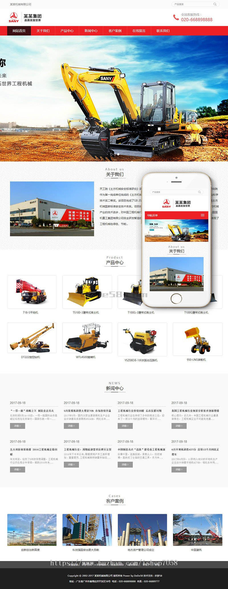 响应式网站工程机械设备挖掘机机器设备网址织梦网站模板(响应式移动端) PC wap 有利于SEO提升
