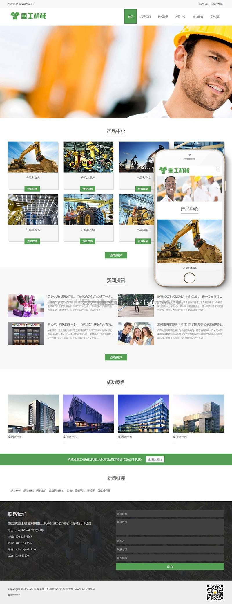 织梦cms核心开发设计的模版,该模版归属于公司通用性、HTML5响应式网站、重工机械、挖机、挖掘机类公司应用,一款适用范围较强的模版,基网页页面素材模板本能够合适各制造行业的企业官网!响应式网站响应式各种各样移动终端,同一个后台管理,数据信息及时同歩,简易可用!原创品牌、手工制作撰写DIV CSS,极致适配IE7 、Firefox、Chrome、360浏览器等;主流浏览器;网页页面简约简易,非常容易管理方法,DEDE核心都能够应用;附加数据测试!
