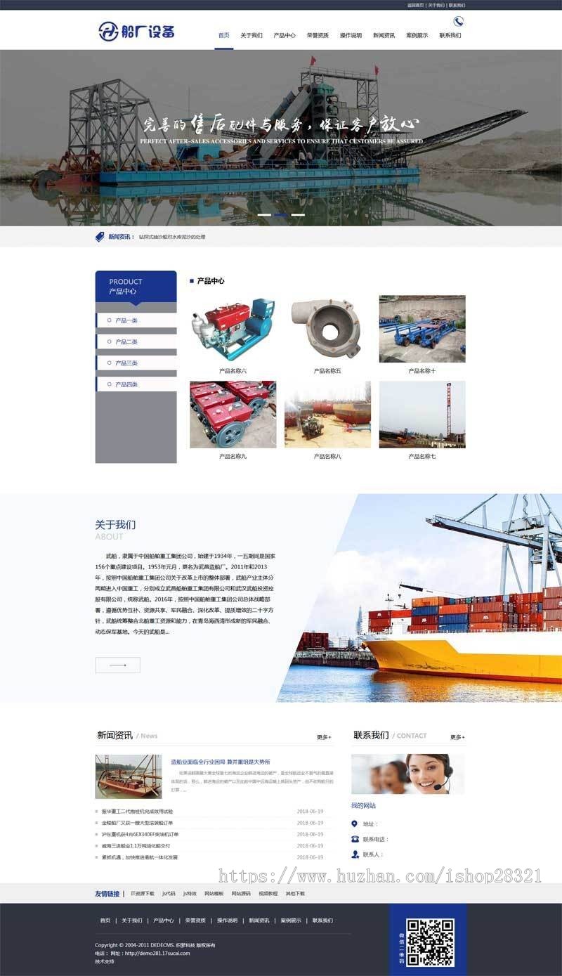 【JR-0457】深蓝色的船只机器设备企业官网织梦网站模板