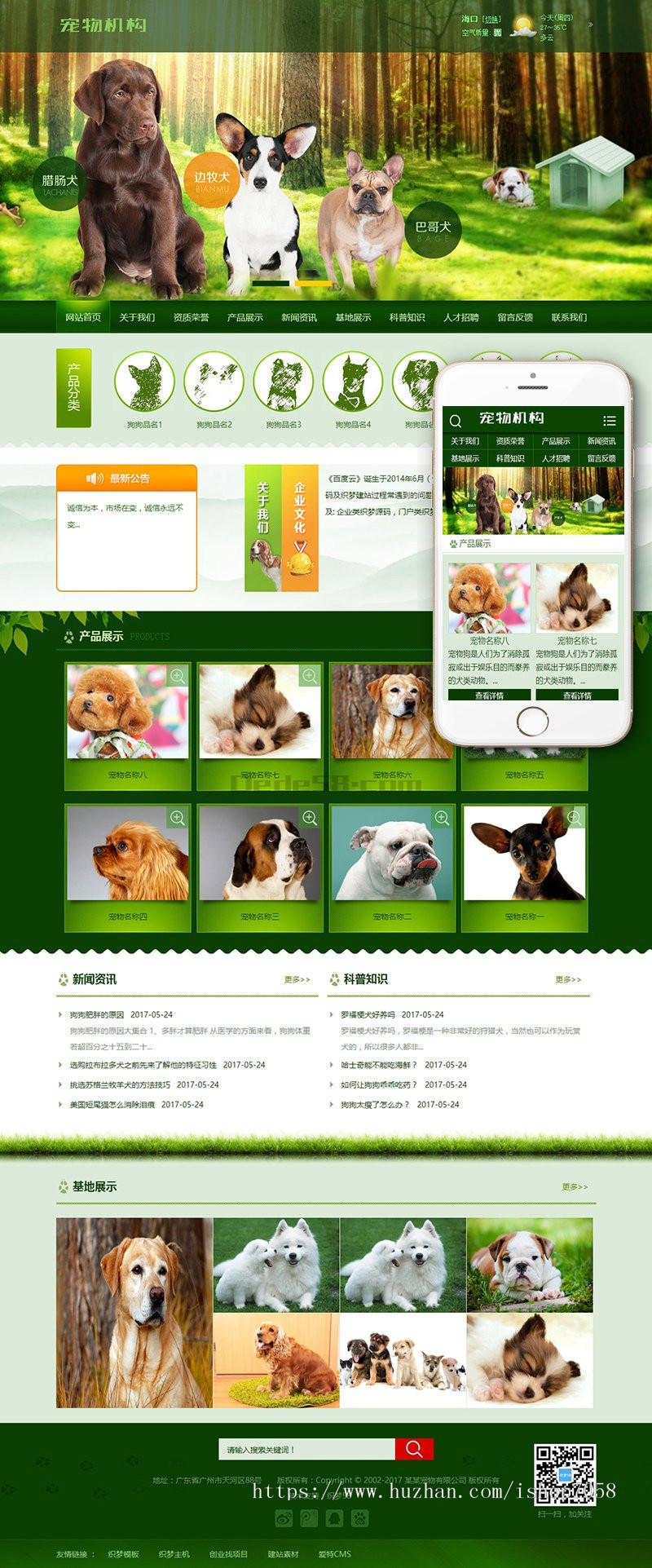 翠绿色宠物犬组织类网址织梦网站模板(带移动端) PC 手机端 有利于SEO提升