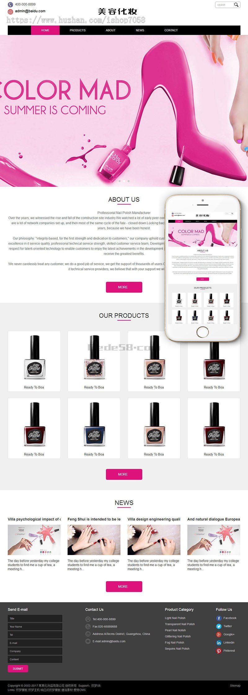 android 开发框架响应式网站出口外贸画妆美容护肤品网址织梦网站模板(响应式移动端)