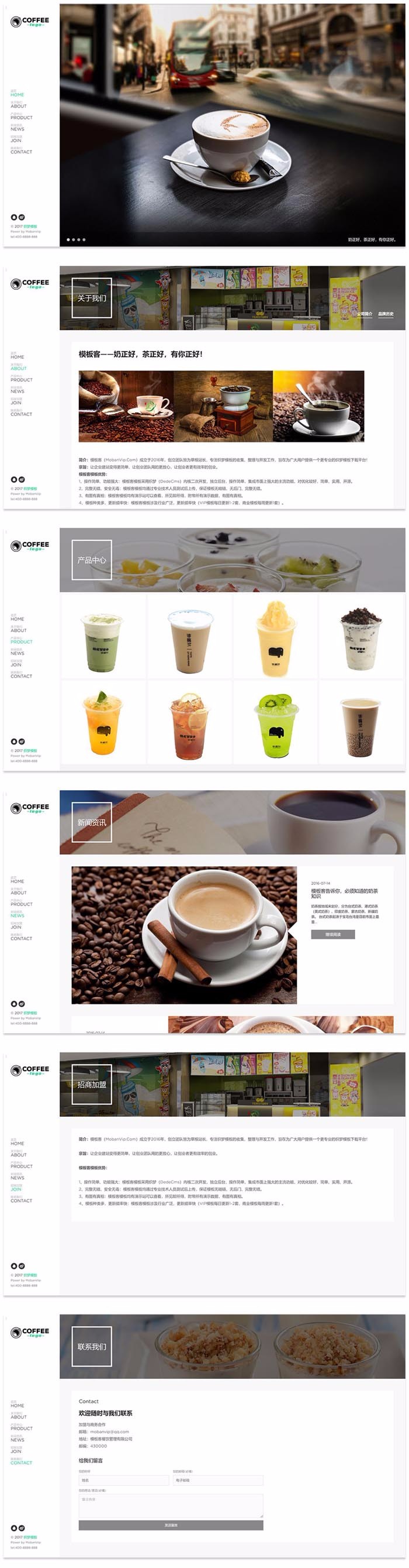 【ZM-0248】空气简洁咖啡奶茶招商加盟类响应式网站织梦网站模板