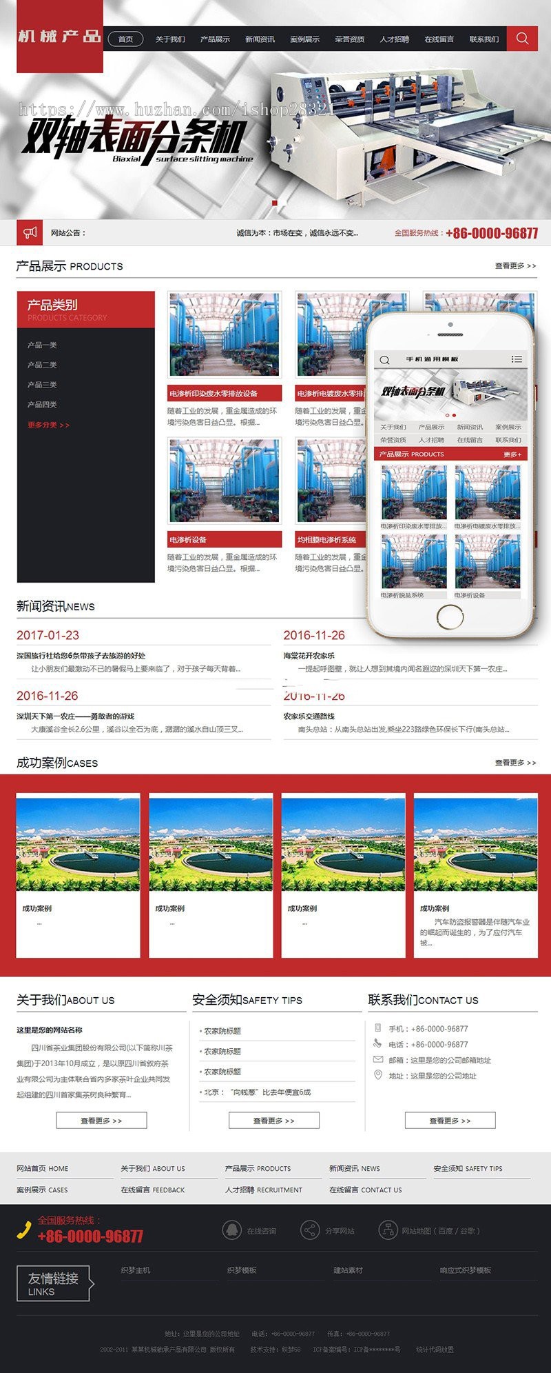 【JR-0网址设计模版源代码411】机械设备滚动轴承分条机类网址类织梦网站模板(带移动端)