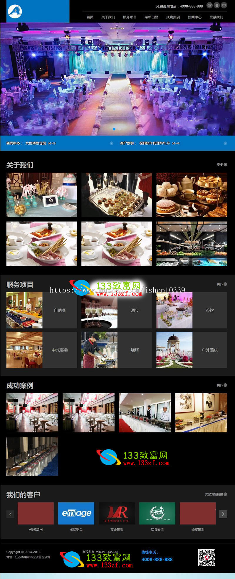 (响应式手机安卓版)bootstrap公司网站模版响应式网站宴席展览厅网站源代码 展览设计类网址织梦网站模板