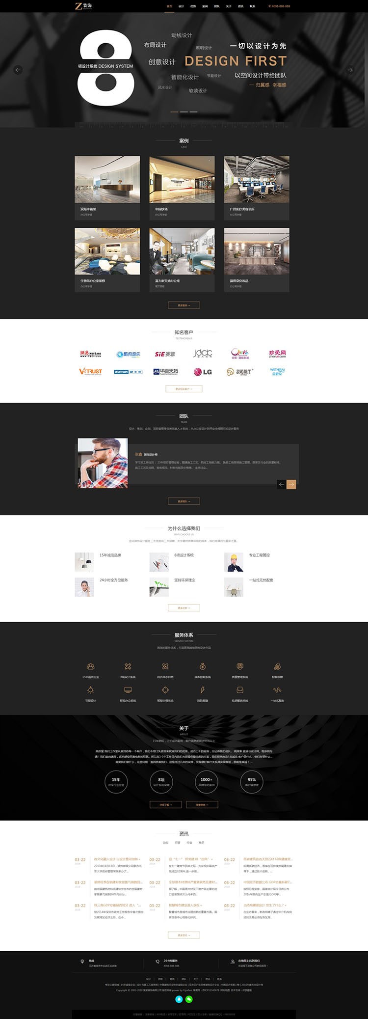 【ZM-0122】响应式网站灰黑色酷炫建筑装饰设计设计类织梦网站模板(响应式移动端)