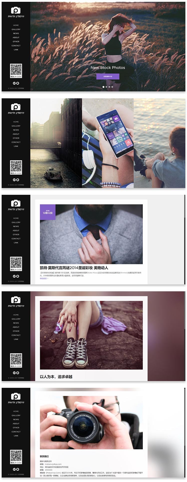 【ZM-0323】灰黑色流式布局拍摄画苑类响应式网站织梦网站模板带移动端