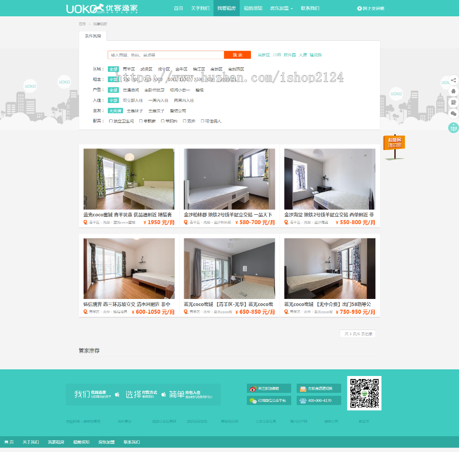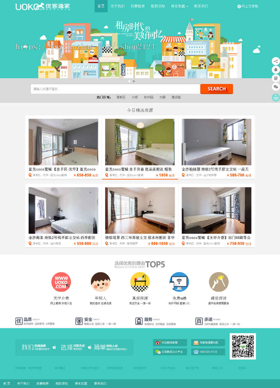仿优客逸家租房网|小公寓租赁网|房屋租赁网|合租房网站源代码|好看空气响应式(带整站源码数据测试)。