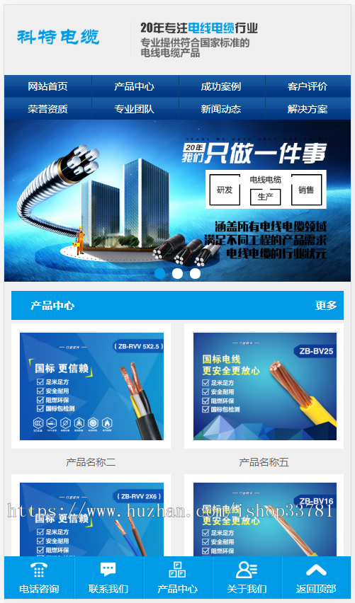 (带手机安卓版数据库同步)营销推广型铝合金电缆类网址织梦网站模板 深蓝色电缆电线网站源代码