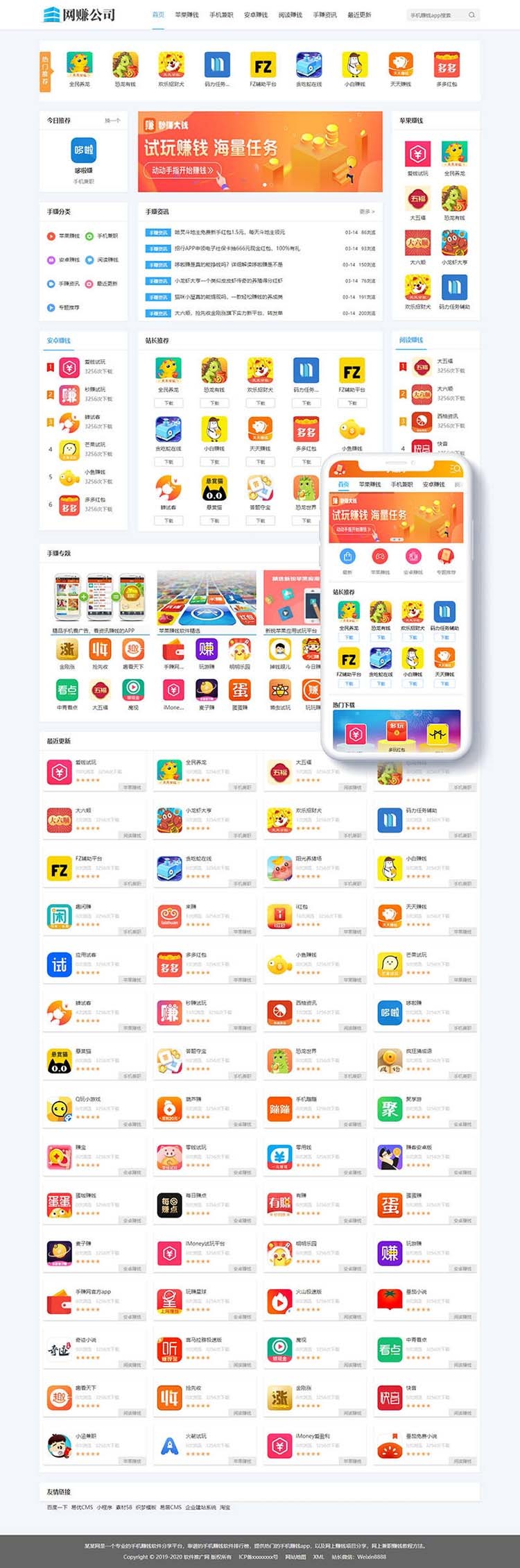 【MF-121】手机上APP手机软件分享赚钱类织梦网站模板(带移动端)