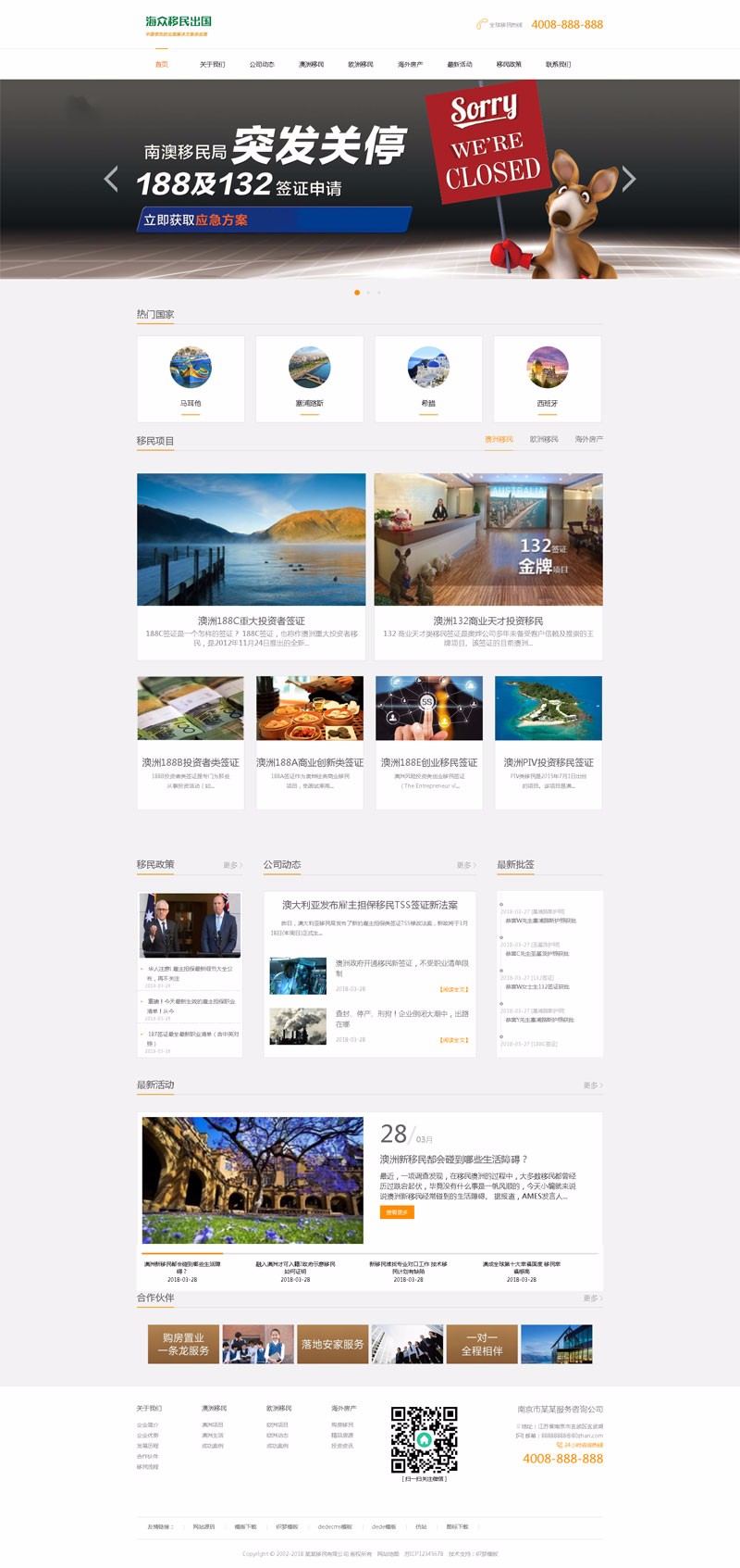 【JR-0630】香港移民留友情链接买卖学出国留学为商务服务类网址织梦网站模板(带移动端)